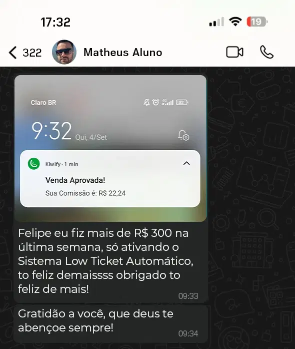 APENAS usando meu "Sistema Low Ticket Automático", assim como o Matheus fez: ⬇️